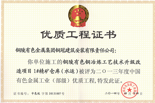 銅山磨浮—安裝優(yōu)質(zhì)工程獎(jiǎng)